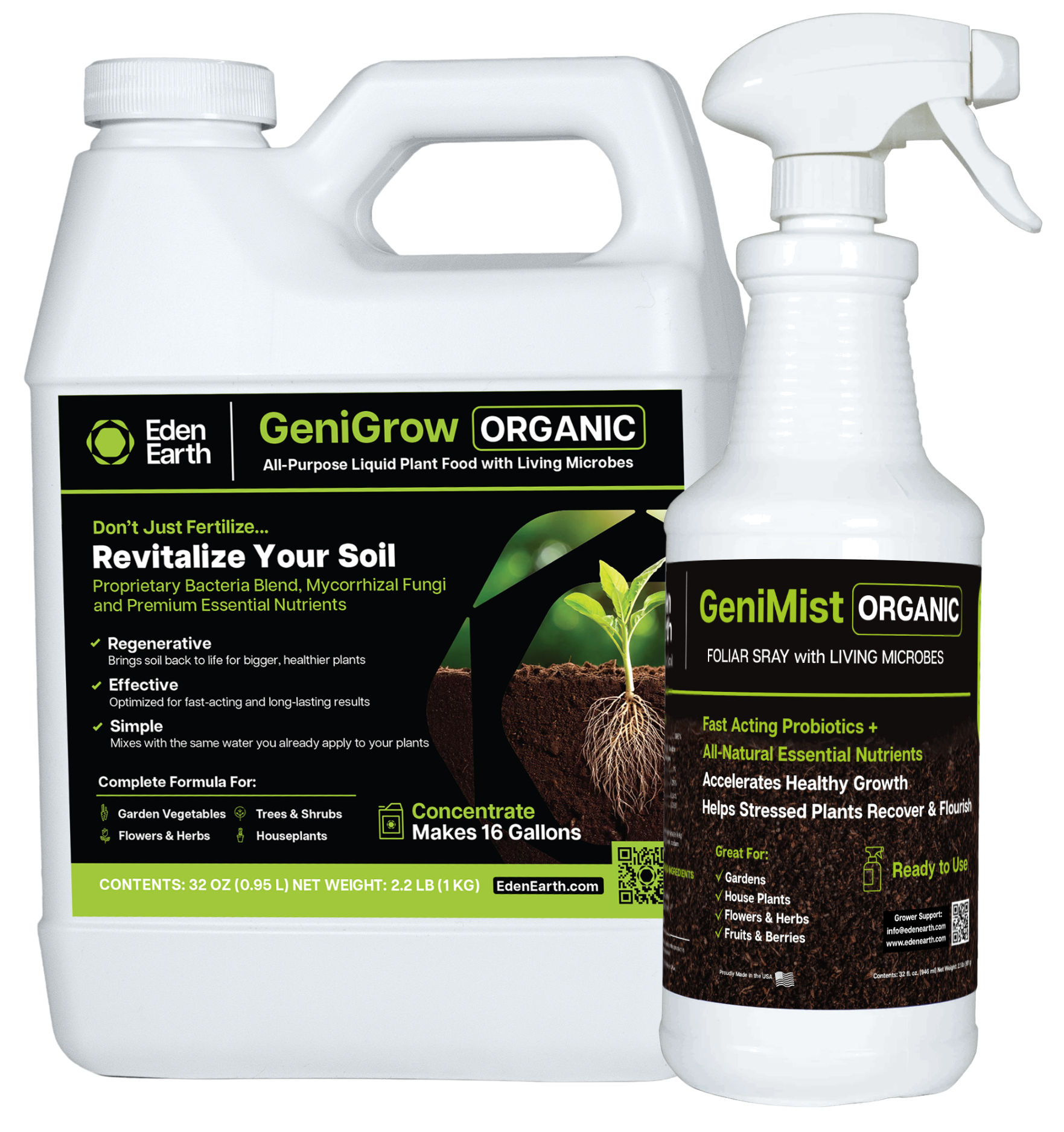 Enhance your house plant grow with our House Plant bundle. Condition your soil, create a sustainable environment, and make your soil a thriving ecosystem. Drench soil with GeniGrow to create a thriving living soil with a robust soil food web. Use GeniMist foliar spray to direct application of nutrients and living organism to increase vitality, resilience, and growth.