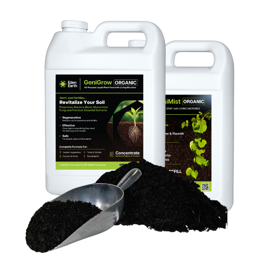 Get your garden ready for the next grow season with our Garden Treatment bundle. Condition your soil, create a sustainable environment, and make your soil a thriving ecosystem. Till in GeniChar into your soil to maximize microbial fertility, aeration, and nutrient exchange. Drench soil with GeniGrow to create a thriving living soil with a robust soil food web. Use GeniMist foliar spray to direct application of nutrients and living organism to increase vitality, resilience, and growth.